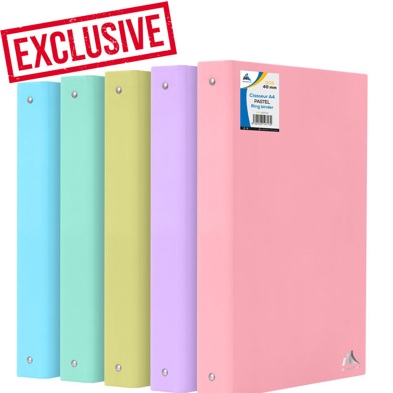 Classeur Souple OfficePlast D40 – Formats Papier à Archiver: A4 – Largeur de Dos: 30 mm – 4 anneaux – Matériau: Polypropylène – Couleur: Pastel