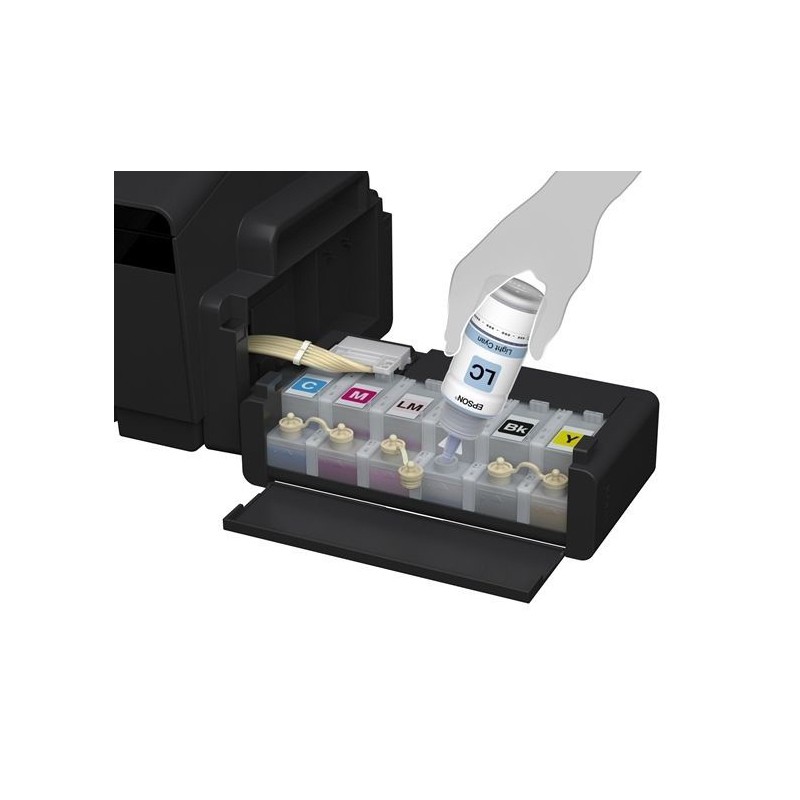 Imprimante à réservoir intégré – 6 Couleurs – Formats: A3+, A3, A4, A5, A6, B5, Enveloppe (C4, C6, DL), Letter, 10x15cm, 13x18cm, 16:9, Legal – Interface USB – Impression 1500 Photo – Résolution: 5760 x 1440 dpi – Vitesse d’impression: 15 Pages/min Monochrome, 15 Pages/min Couleur – Poids 12,5 kg