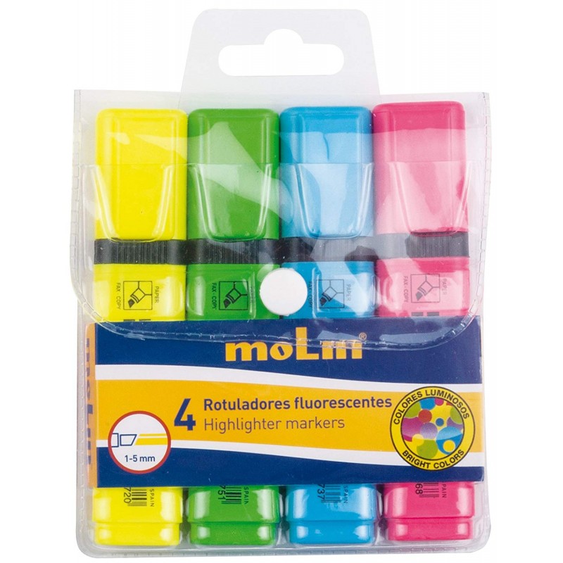 Pochette 4x Surligneurs Molin RTF240 – Lumineux, brillant et résistant à la lumière – Idéal pour le bureau et l’école – Format pratique