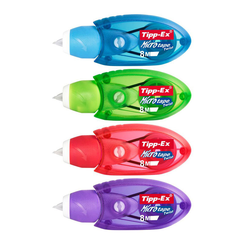 Rouleaux De Correction TIPP-EX Micro Tape Twist – Taille: 5 x 8 mm – Vous pouvez corriger instantanément vos erreurs car il n’est pas nécessaire d’attendre que le ruban à base de papier sèche – Mécanisme de rembobinage pour plus de contrôle – Tipp-Ex Microtape Twist a une tête rotative brevetée qui protège la plume contre les dommages – Couleur: Assortis