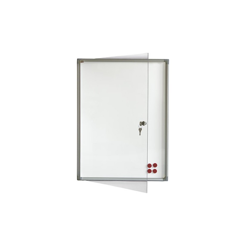 Tableau Vitrine – Structure de fond magnétique – Cadre en aluminium – Porte en polycarbonate verrouillable avec clé Allen – Usage d’utilisation intérrieur – Support d’acier zink .
